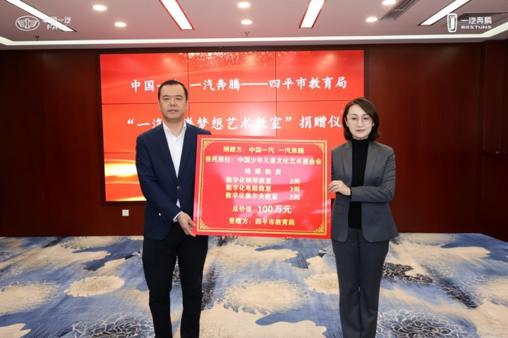 此次共向四平市教育局捐赠7间“一汽奔腾梦想艺术教室”,总价值100万元,彰显出中国一汽、一汽奔腾与四平市的坚实合作基础和深厚政企情谊,为双方协同发展增添文化暖流。